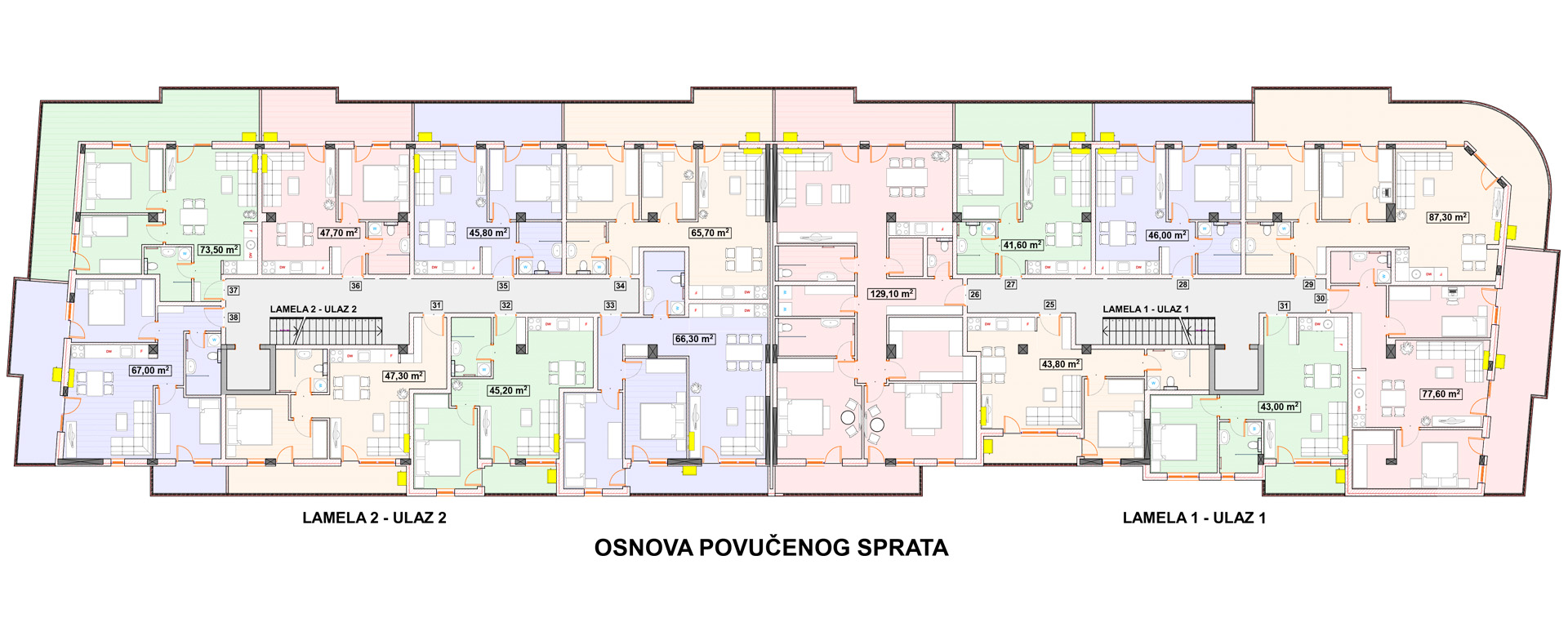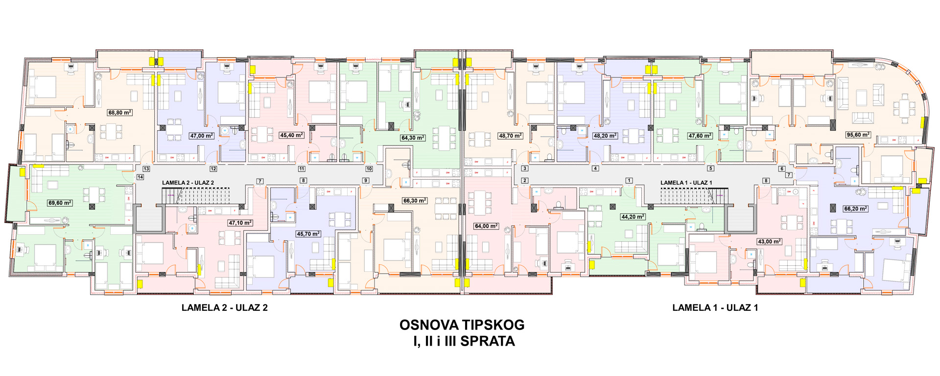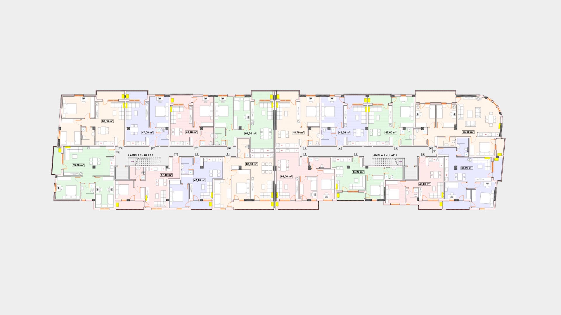Ugao Šumadijske, Dalmatinske i Beogradske ulice, Požarevac Lokacija:Ugao Šumadijske, Dalmatinske i Beogradske ulice, Požarevac Početak izgradnje:Avgust 2025. Završetak izgradnje:Decembar 2026. Napomena:Proverite dostupnost garažnih mesta.Mogućnost kupovine stana sa ili bez garažnog mesta. Osnova podruma Osnova tipskog sprata Osnova povučenog sprata Ugao Šumadijske, Dalmatinske i Beogradske ulice, Požarevac - Lamela 1 I sprat Stan 1 – Lamela 1Površina: 44.20 m2Pročitaj više » Stan 2 – Lamela 1Površina: 64.00 m2Pročitaj više » Stan 3 – Lamela 1Površina: 48.70 m2Pročitaj više » Stan 4 – Lamela 1Površina: 48.20 m2Pročitaj više » Stan 5 – Lamela 1Površina: 47.60 m2Pročitaj više » Stan 6 – Lamela 1Površina: 95.60 m2Pročitaj više » Stan 7 – Lamela 1Površina: 66.20 m2Pročitaj više » Stan 8 – Lamela 1Površina: 43.00 m2Pročitaj više » Dokumenti za preuzimanjeOsnova podrumaOsnova tiskog sprataOsnova povučenog sprata