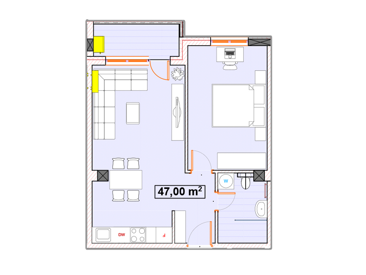 stan 47.00m2, III sprat - Lamela2
