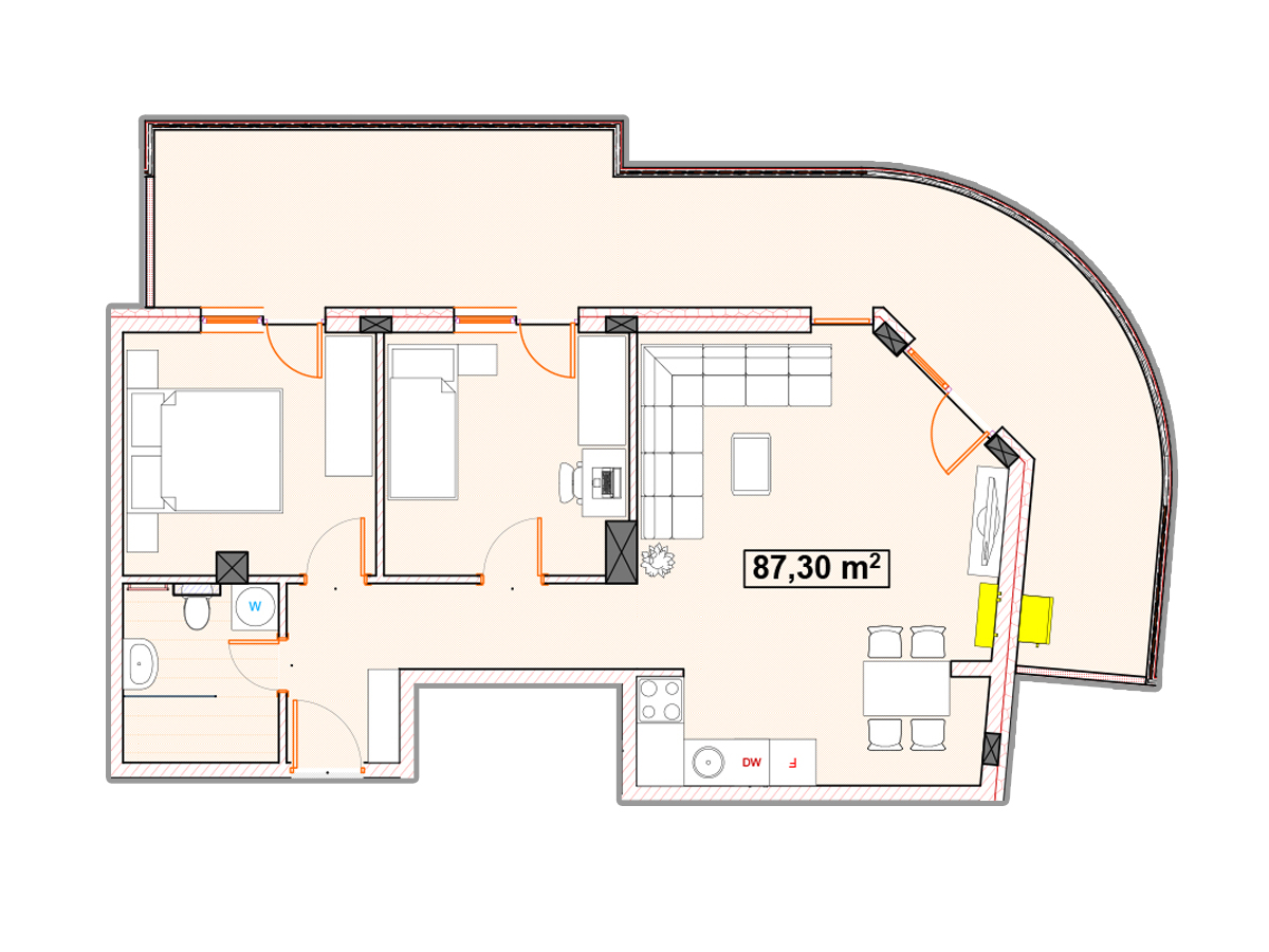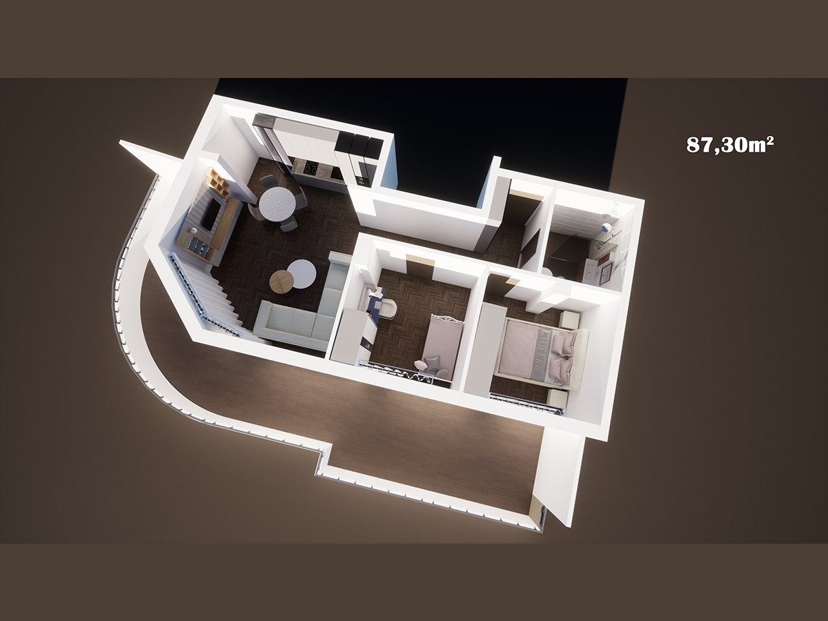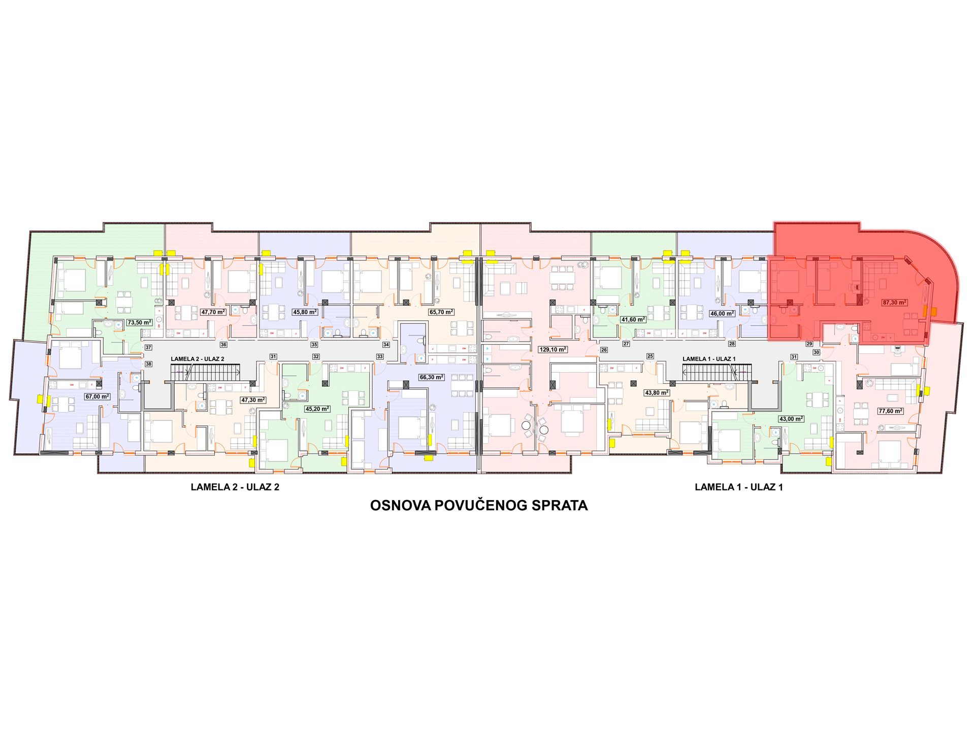 stan 87.30m2, Povučeni sprat - Lamela1