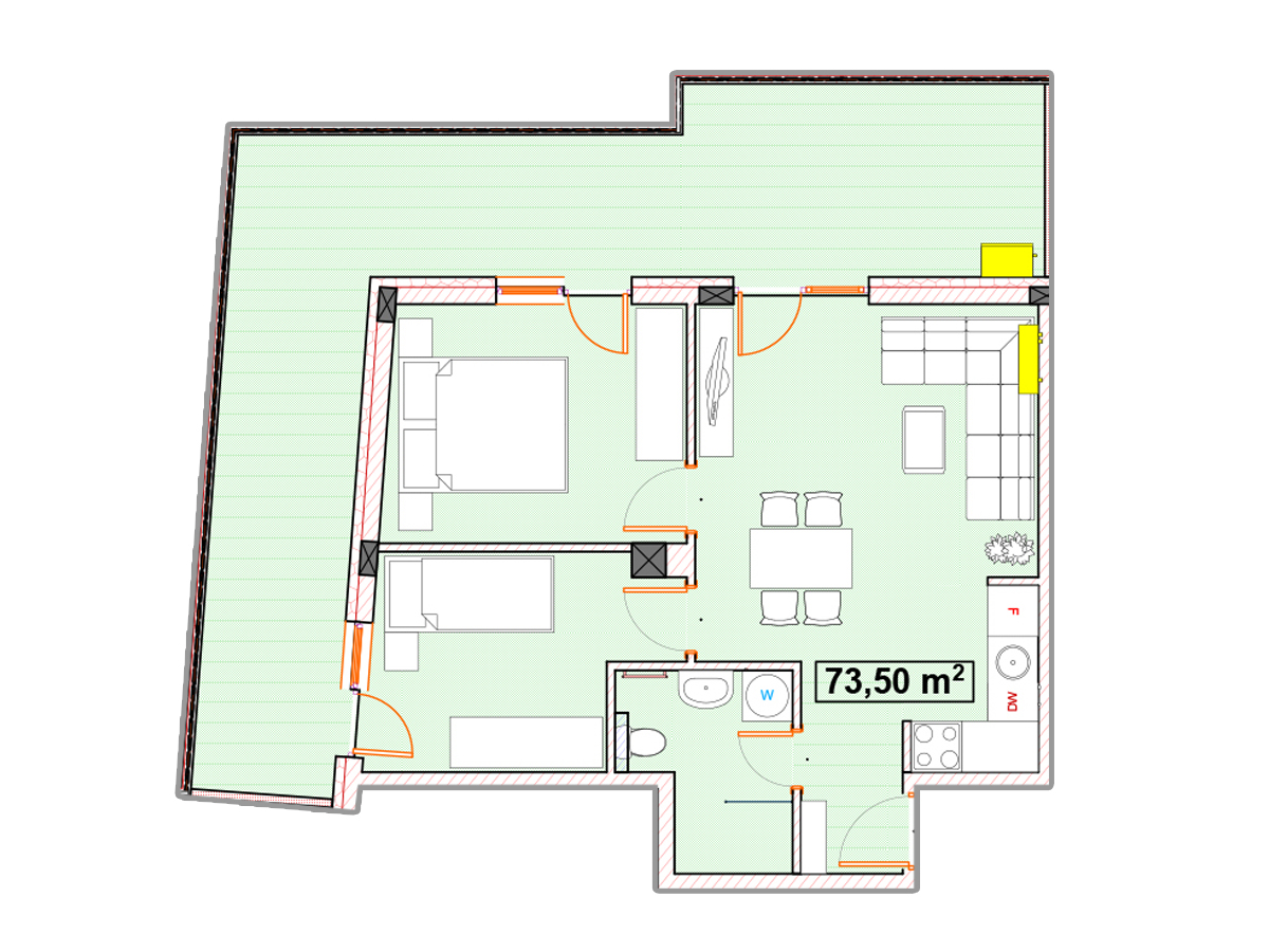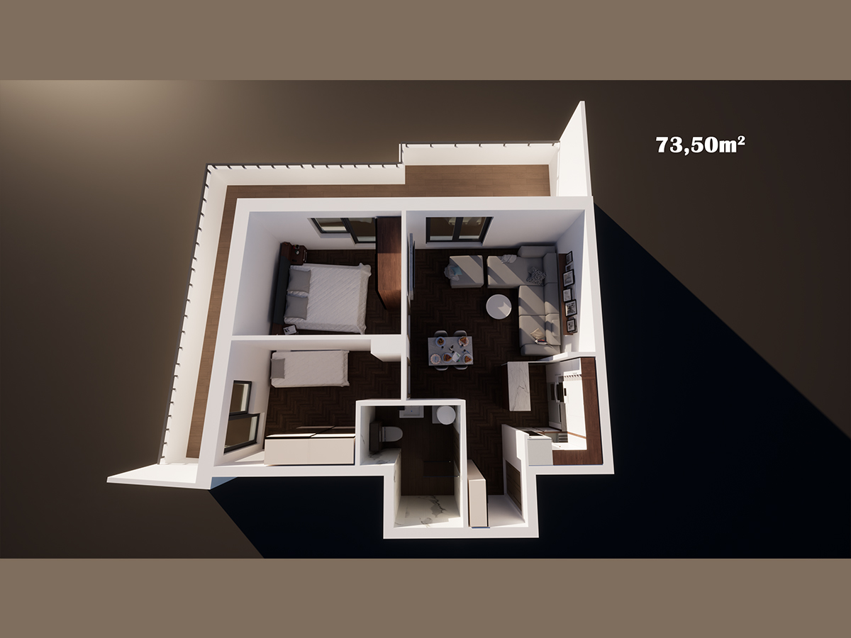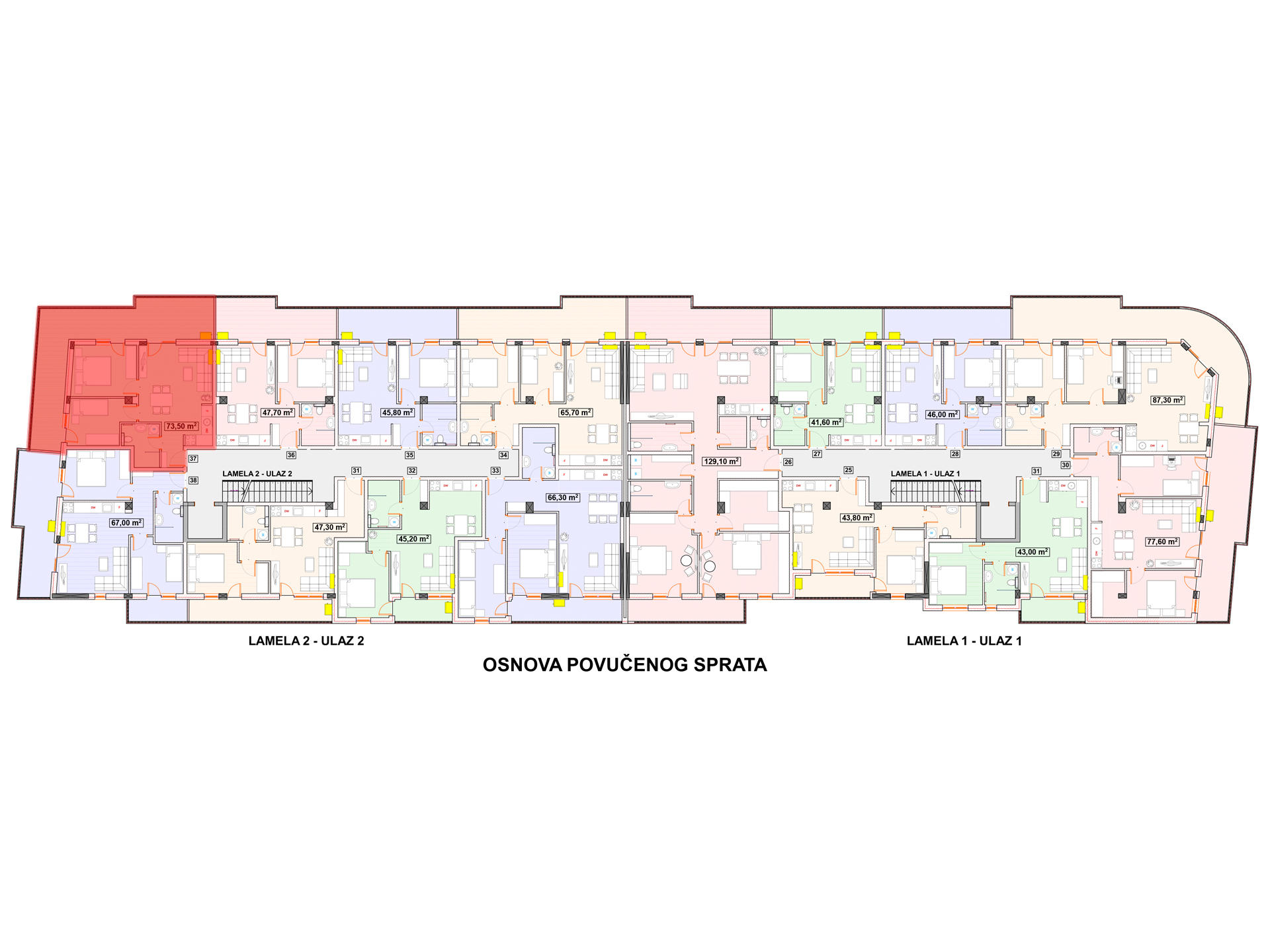 stan 73.50m2, Povučeni sprat - Lamela2